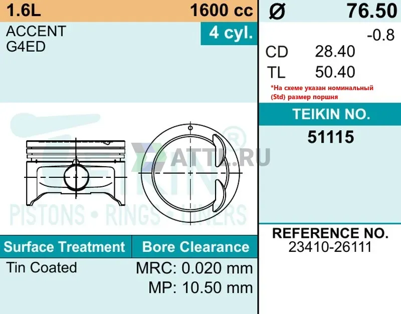 Диаметр поршня STD76.50