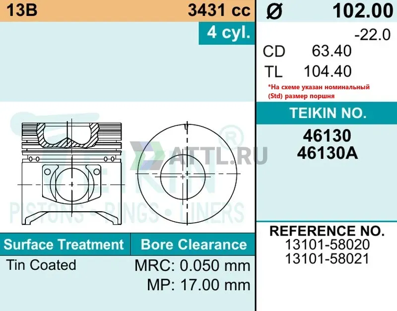 Высота поршня TL104.40