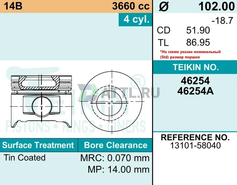 Кольца поршневые OEM #13011-58050, 13011-58051, 13011-58070, 13013-58050, 13013-58070, 13014-58050, 13014-58070, 13015-58050, 13015-58070