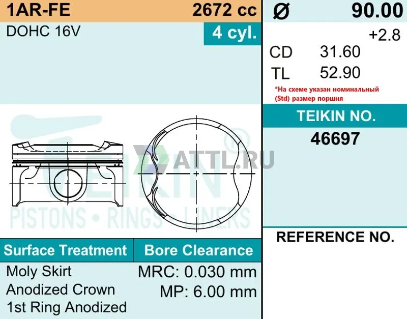 Высота поршня TL52.90