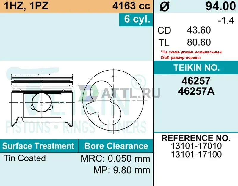 Кольца поршневые OEM #13011-17010, 13011-17011, 13011-17020, 13011-17030, 13013-17010, 13013-17011, 13013-17020, 13013-17030
