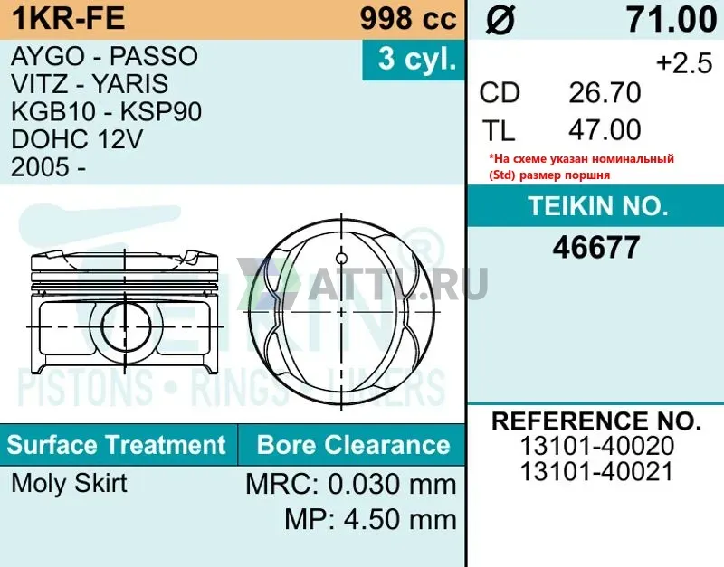 Комплект поршней 1KR-FE