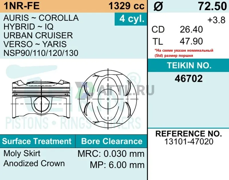 Комплект поршней 1NR-FE