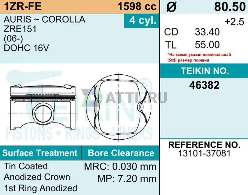 Кольца поршневые OEM #13011-37090, 13011-37130, 13011-37140, 13011-37160