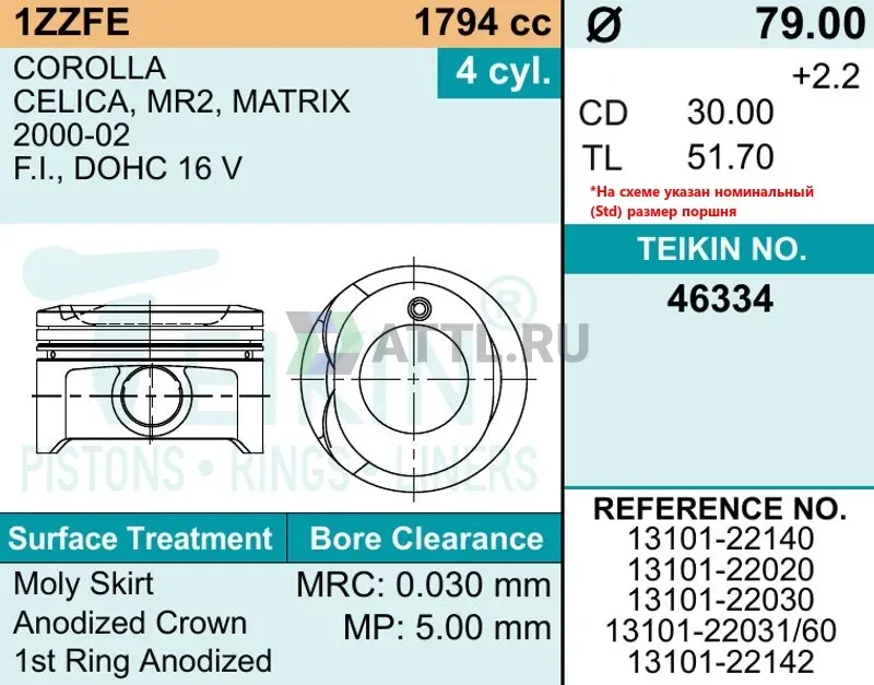 Диаметр поршня STD79.00