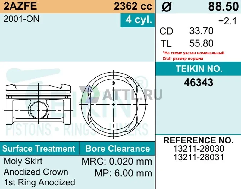 Кольца поршневые OEM #13011-23100, 13011-28100, 13011-28101, 13011-28102, 13011-28141, 13011-28150, 13011-28151, 13011-28180
