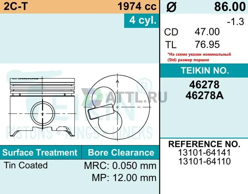 Высота поршня TL76.95