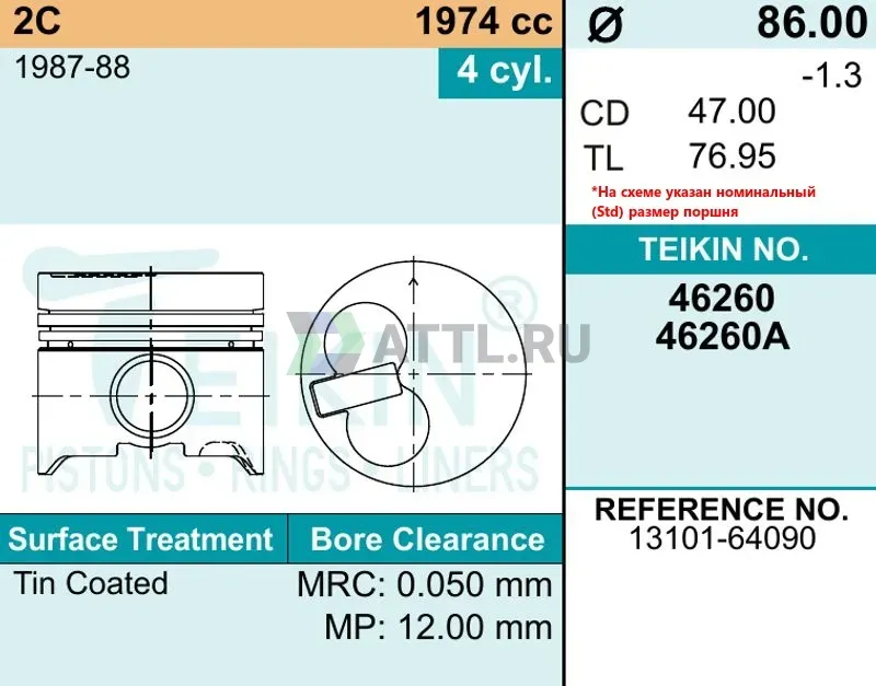 Кольца поршневые OEM #13011-64170, 13013-64170