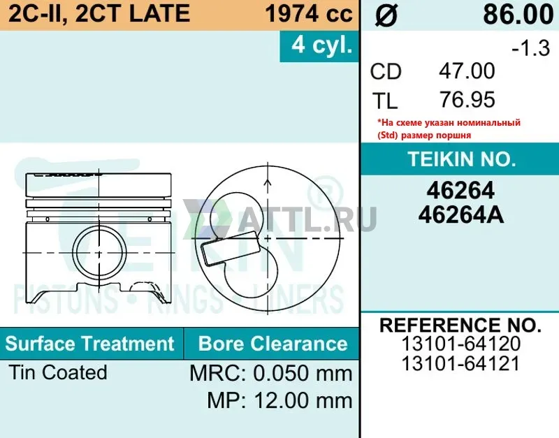 Комплект поршней 2C-II, 2CT LATE
