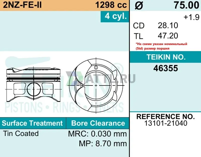 Комплект поршней 2NZ-FE