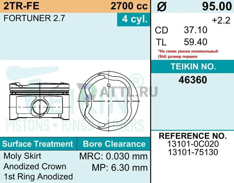 Применимость2TRFE, 2.7L, '04-, PRADO 120, FORTUNER '14-,