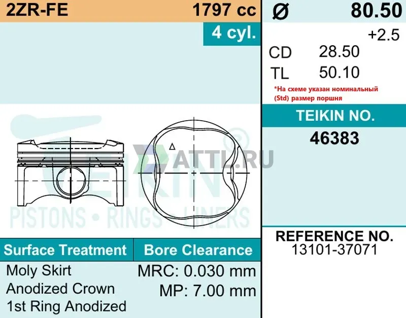 Диаметр поршня STD80.50