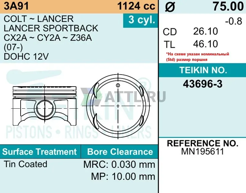 Высота поршня TL46.10