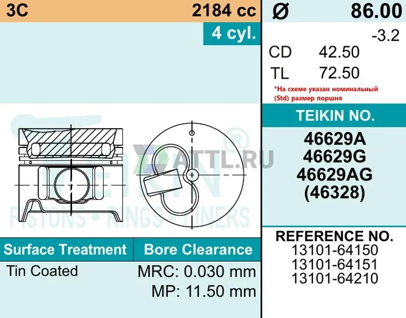 Кольца поршневые OEM #13011-64190, 13011-64191, 13011-64202, 13011-64210, 13011-64212, 13011-64213, 13013-64190, 13013-64191, 13013-64212, 13013-64213