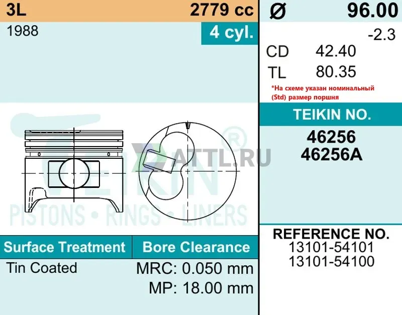 Высота поршня TL80.35