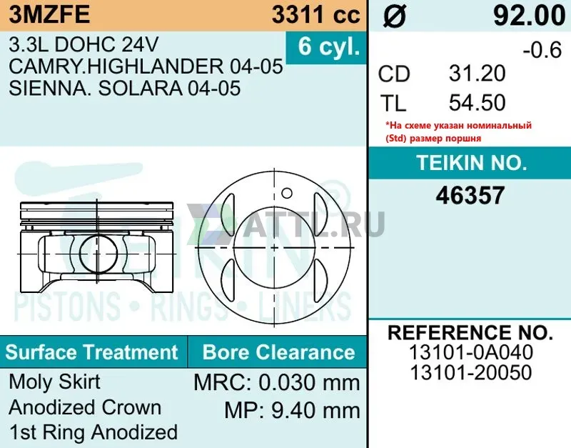 Кольца поршневые OEM #13011-20060, 13011-20061