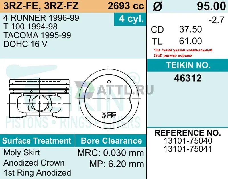 Комплект поршней 3RZ-FE, 3RZ-FZ