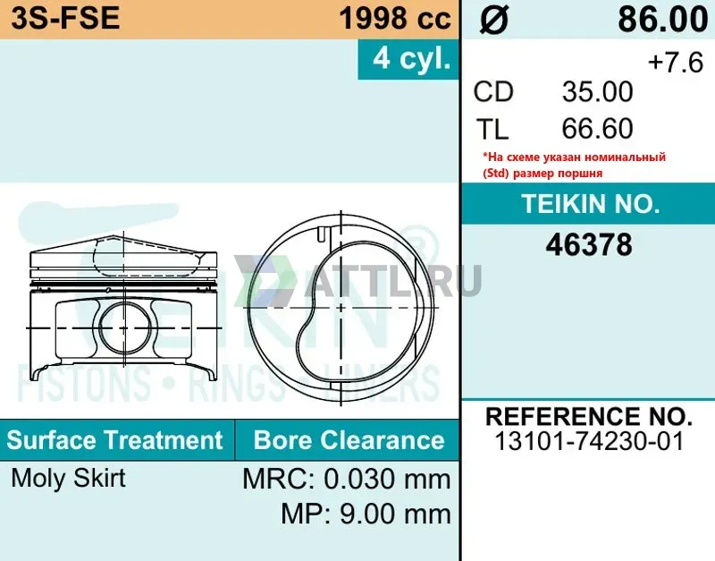 Комплект поршней 3S-FSE d86 STD 1,2-1,2-2