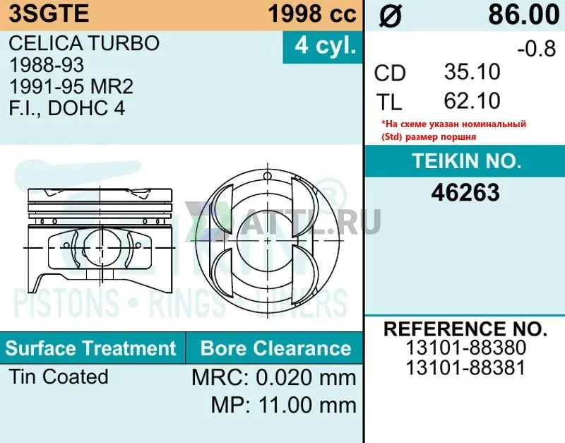 Комплект поршней 3S-GTE