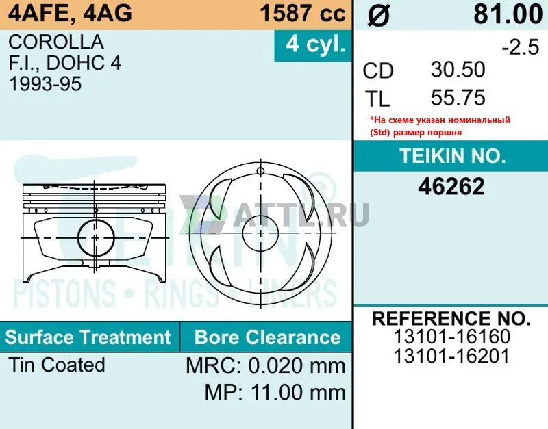 Применимость4AFE '92-'99 D=20, AE100, AE111