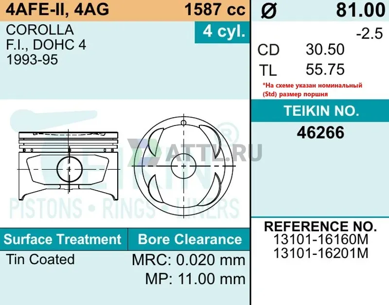 Применимость4AFE '92-'99 D=20, AE100, AE111