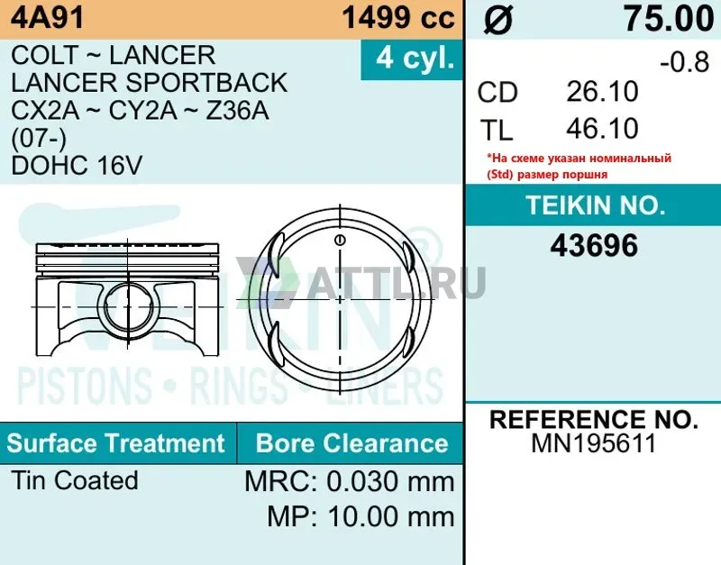 Высота поршня TL46.10