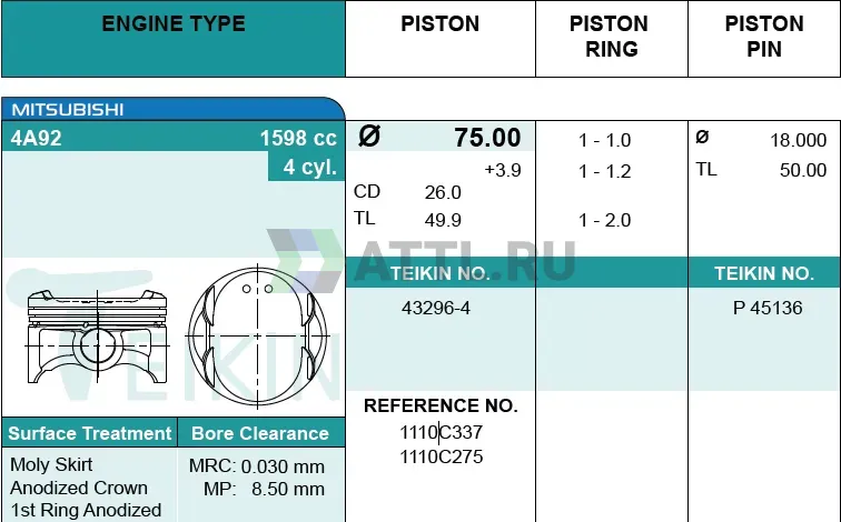 Кольца поршневые OEM #1110C488, 33464, 1110B699