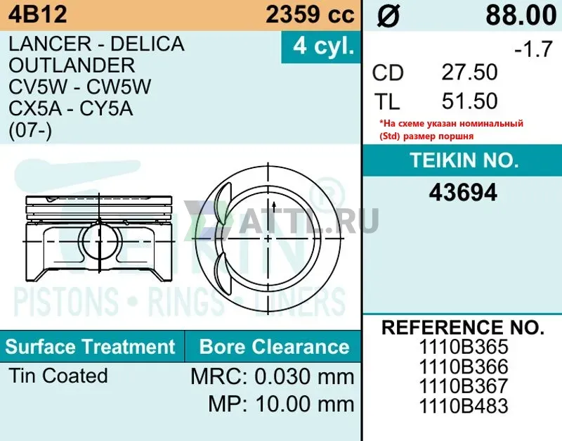 Кольца поршневые OEM #1110A822, 1110B485, 1110B754, 1110C162