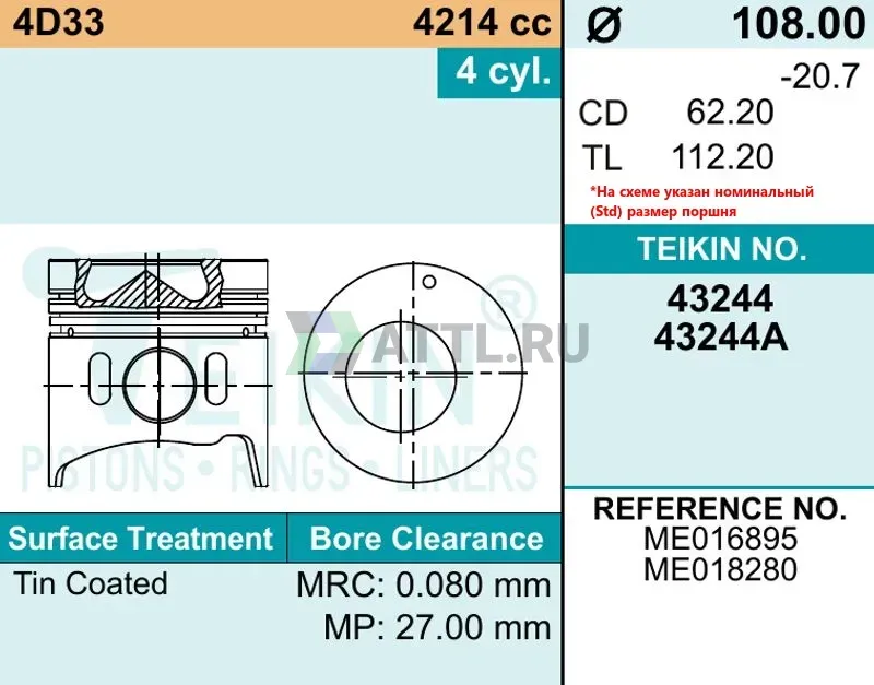 Диаметр поршня STD108.00