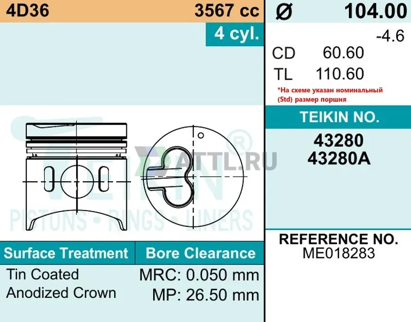 В комплекте усиленные поршни со стальной вставкой ALFIN в канавке первого поршневого кольца.