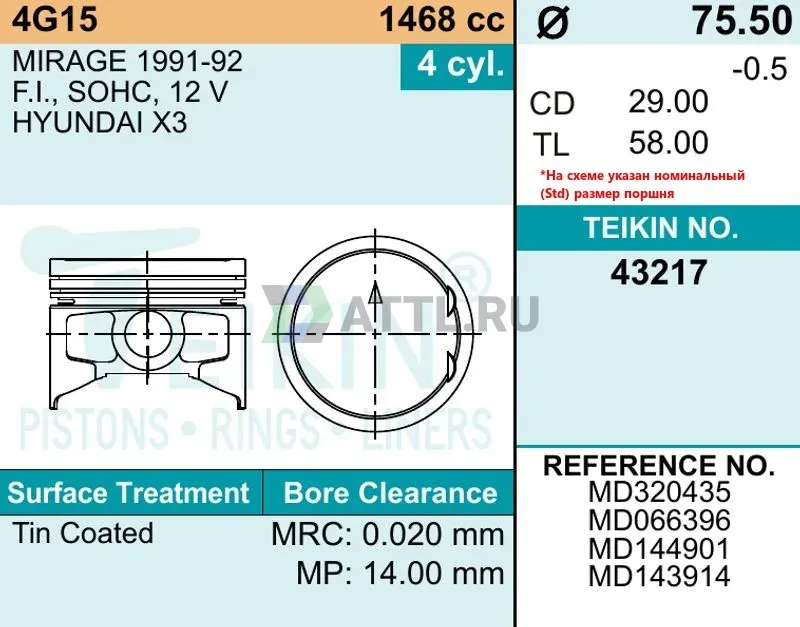 Диаметр поршня STD75.50