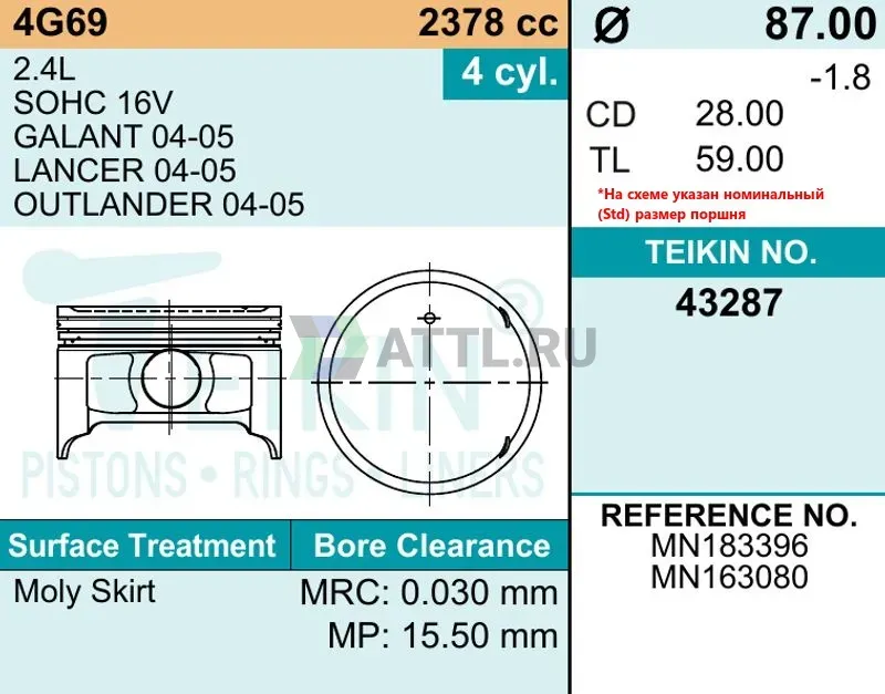 Высота поршня TL59.00