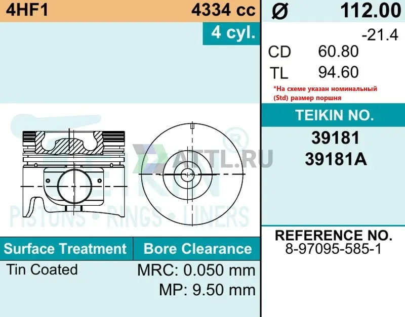 Кольца поршневые OEM #8-97028-691-0, SDI10139ZZ STD