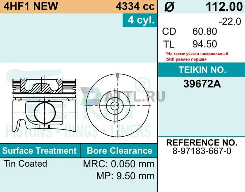 Высота поршня TL94.50