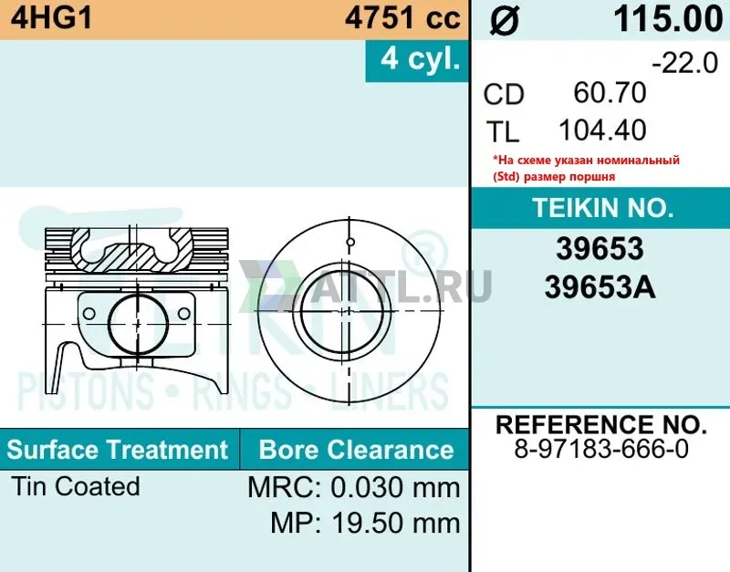 Высота поршня TL104.40