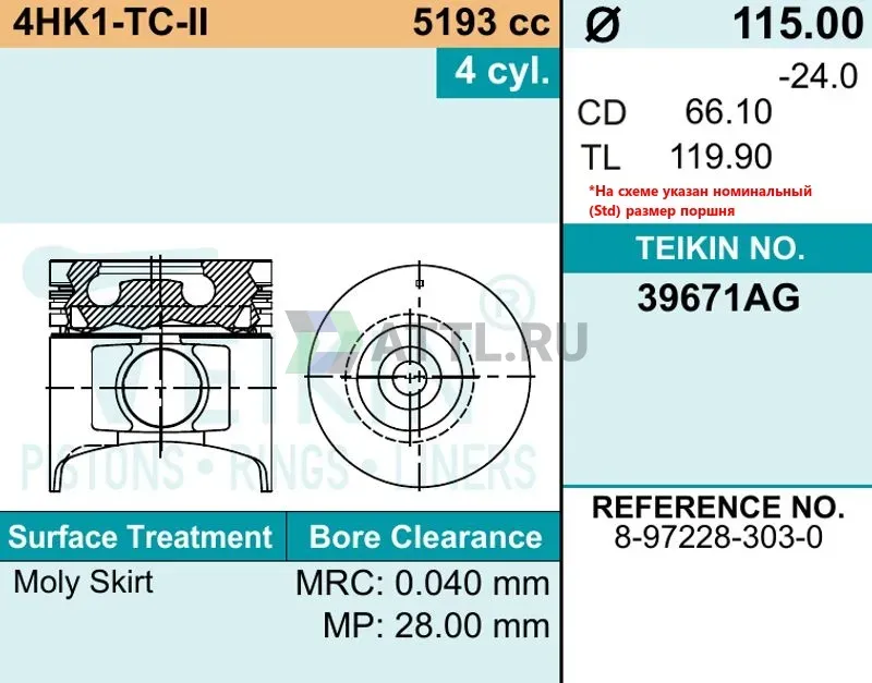 Кольца поршневые OEM #8-97105-867-0, 8-97219-054-0, 8-98055-478-0
