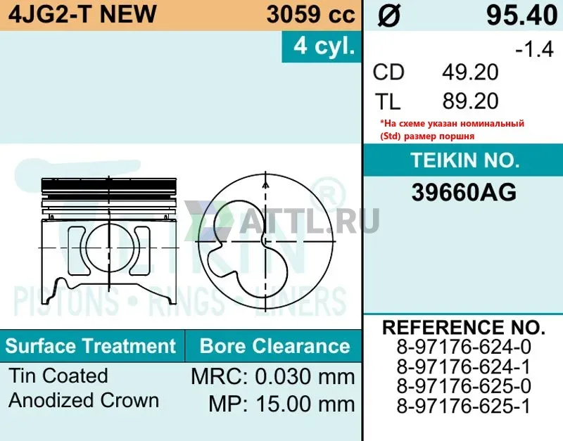 Высота поршня TL89.20
