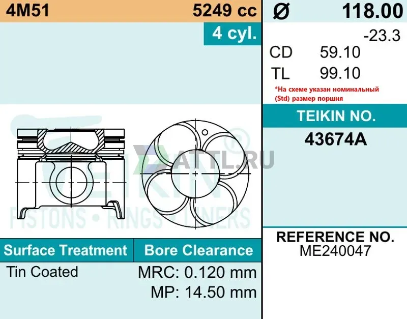 Диаметр поршня STD118.00