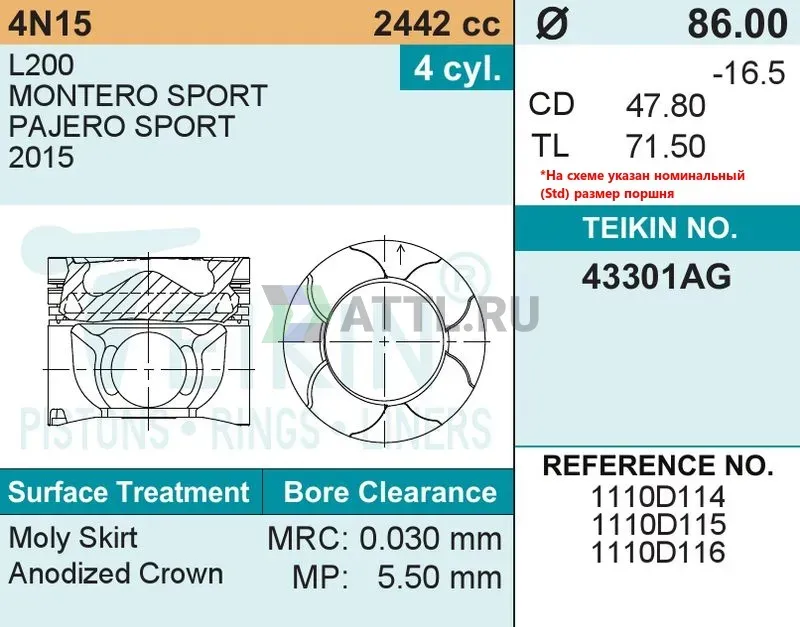 Применимость4N15, L200, PAJERO SPORT '2015-