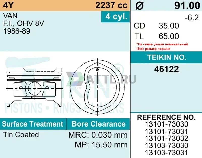 Кольца поршневые OEM #13011-73020, 13011-73021, 13011-73030, 13011-73031, 13011-73032, 13011-73040, 13011-73042, 13013-71031, 13013-71033, 13013-73020, 13013-73021