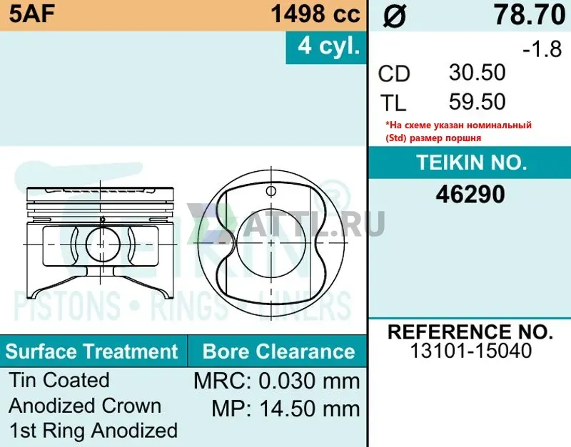 Высота поршня TL59.50