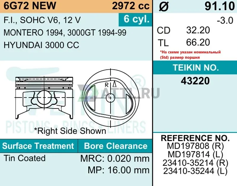 Комплект поршней 6G72 (R/L)