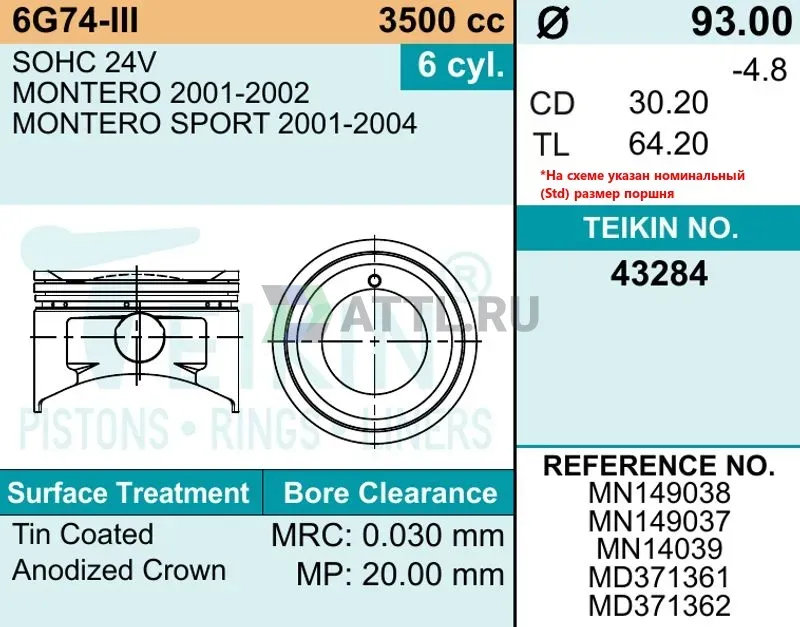 Комплект поршней 6G74-III