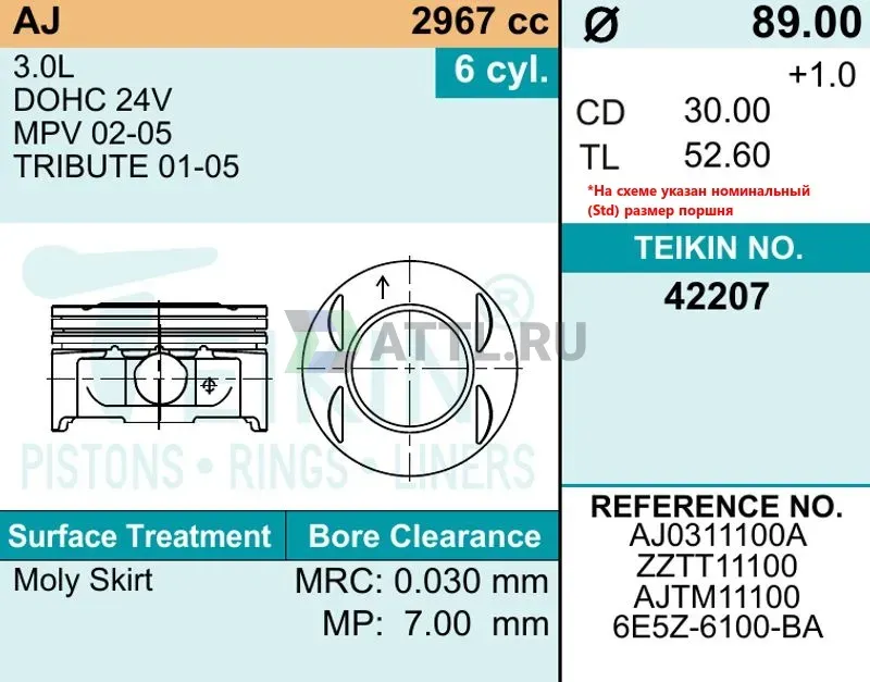 ПрименимостьAJ 3000CC DOHC 24V MPV '02-'05, TRIBUTE '01-'05
