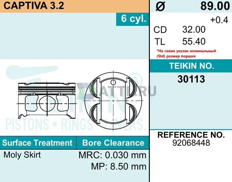 Диаметр поршня STD89.00
