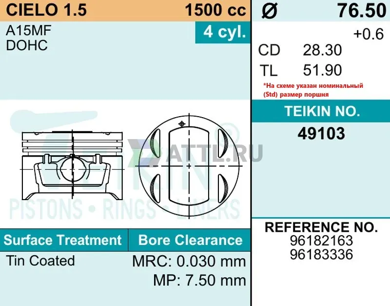Диаметр поршня STD76.50