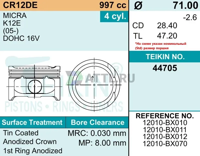 Кольца поршневые OEM #12033-BX000, 12035-BX000, 12033-AX001, 12033-AX00A