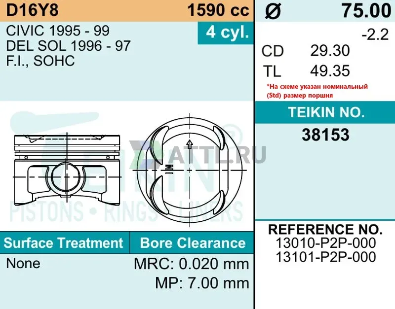 OEM кросс13010-P2P-000, 13101-P2P-000
