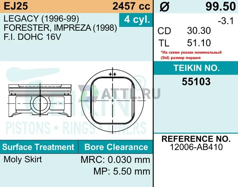 Кольца поршневые TKNR55103 050