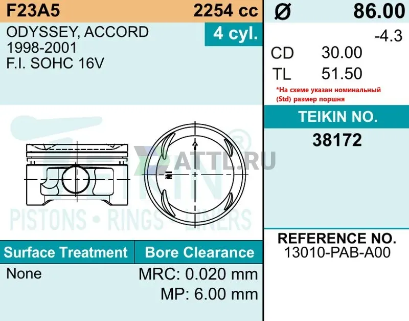 Диаметр поршня STD86.00